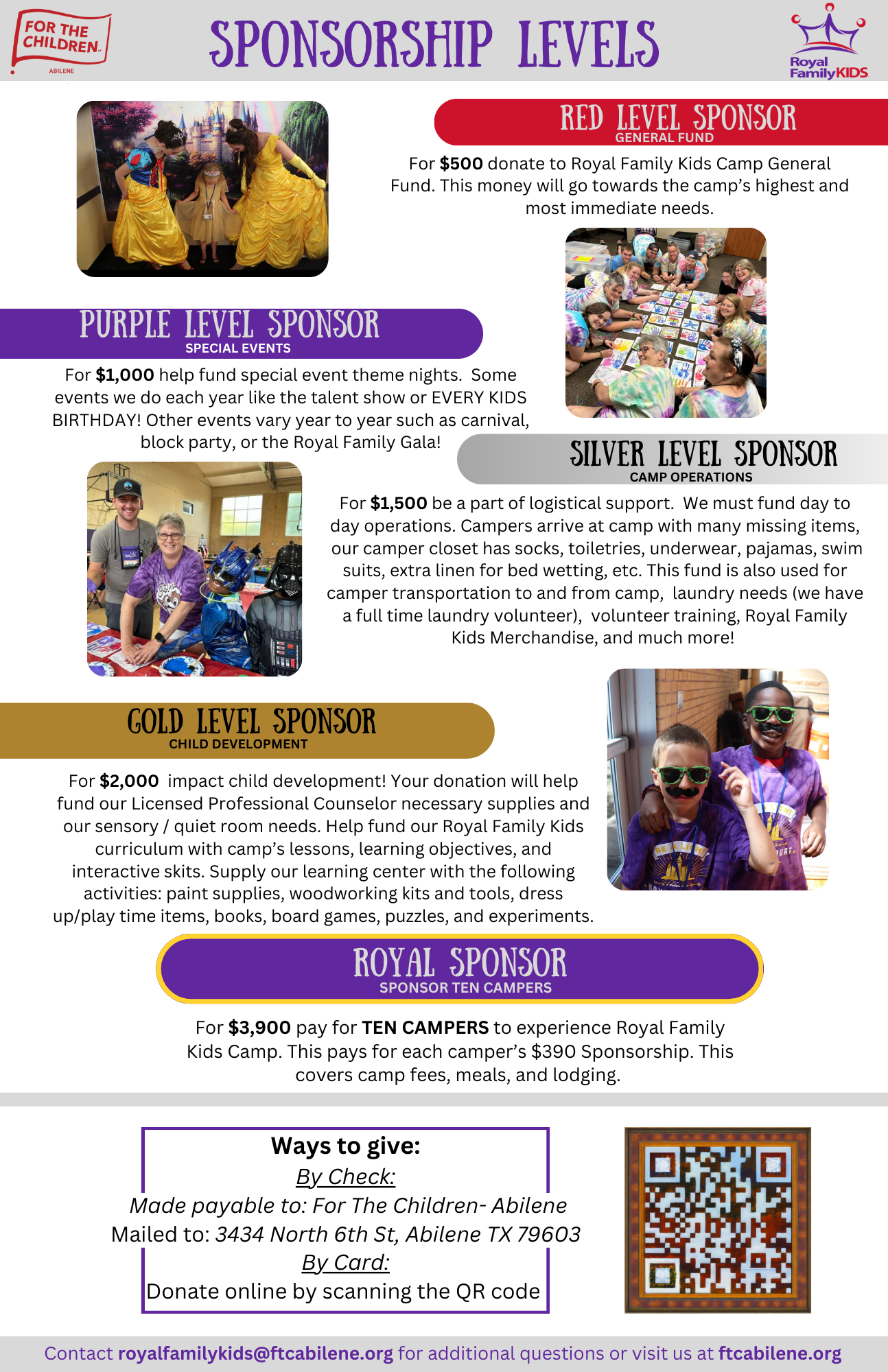 Disclaimer: For The Children Abilene reserves the right to any allocate donation to the most pressing needs within our programs, if needed, to ensure funds are directed where they can have the greatest impact for the children we serve.